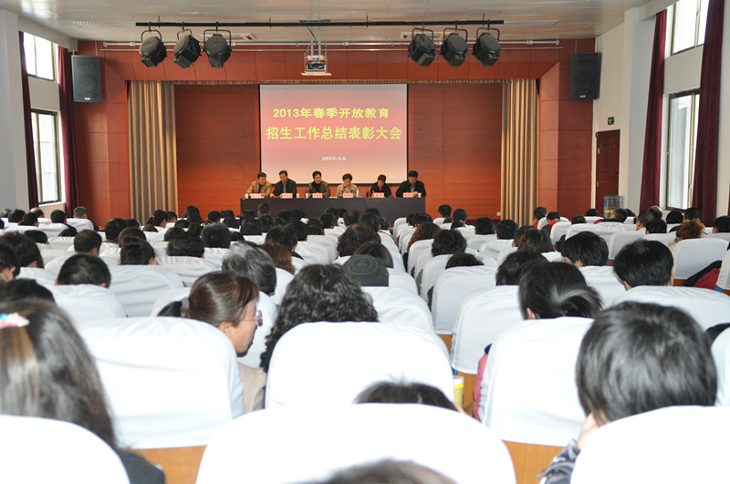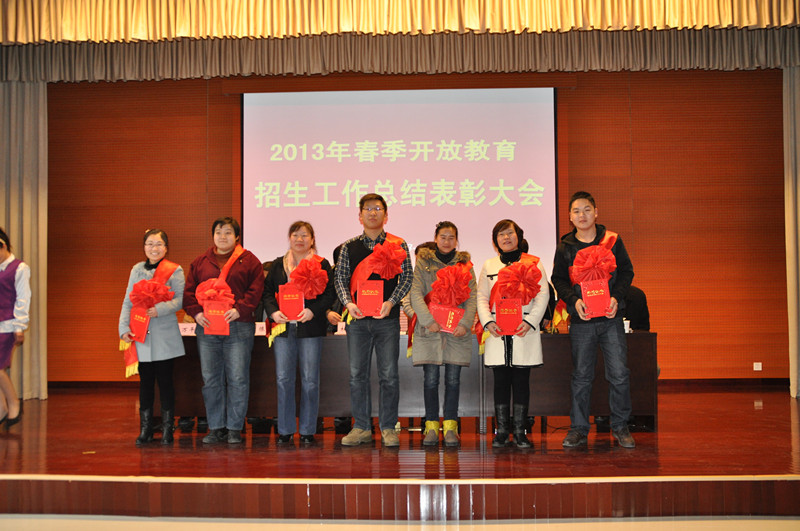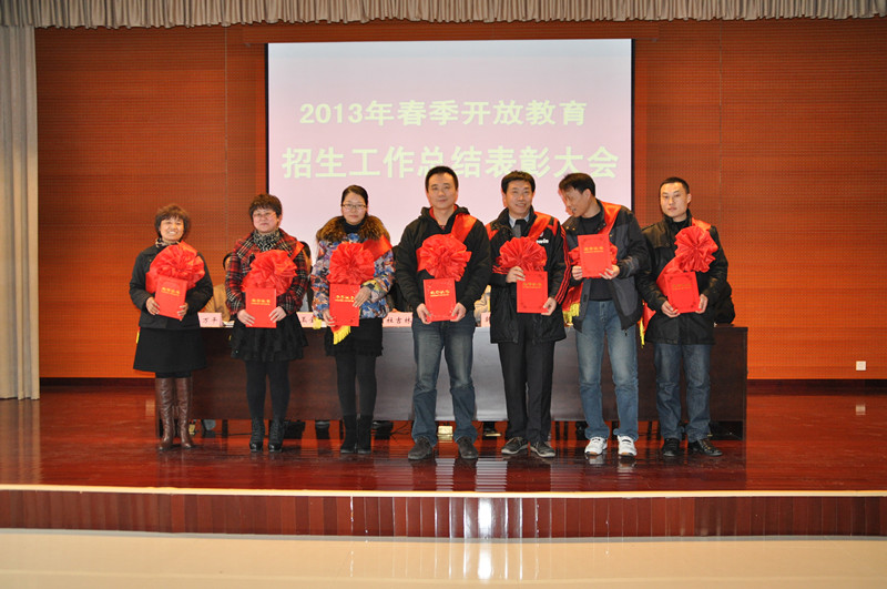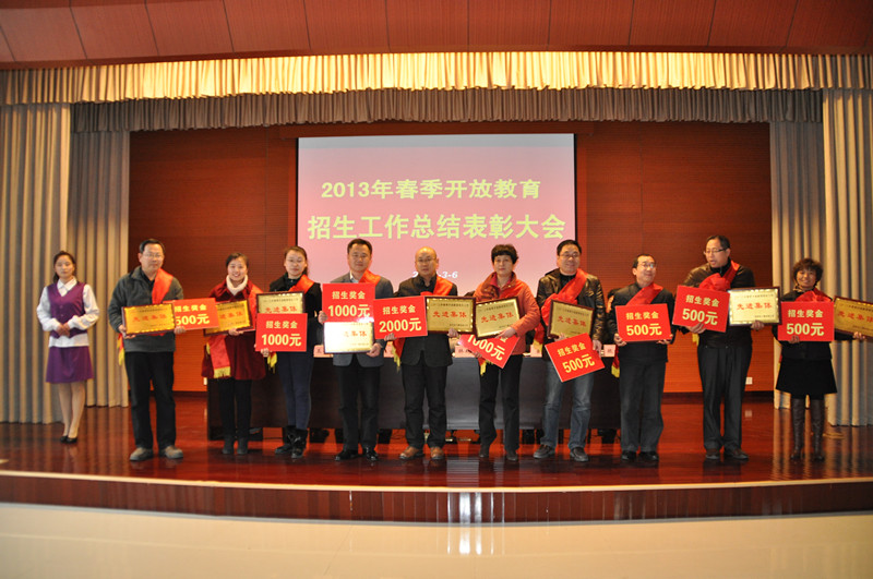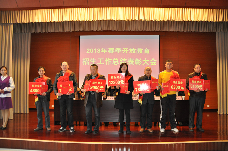 大会对在2013年春季开放教育招生工作中表现突出的10个先进集体和53名先进个人进行了表彰,并颁发了奖牌、荣誉证书、奖金。