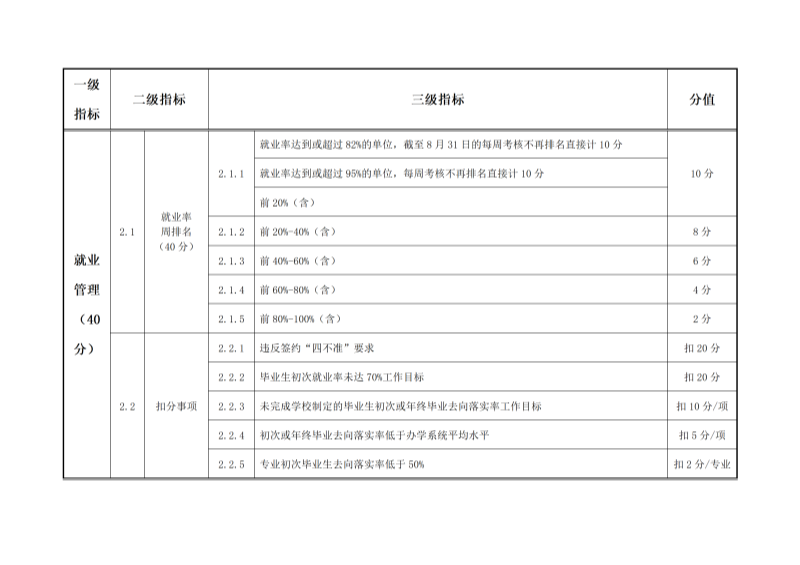江苏城市职业学院毕业生就业工作量化评价分值表