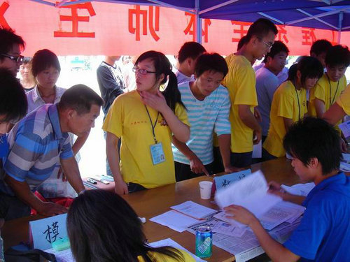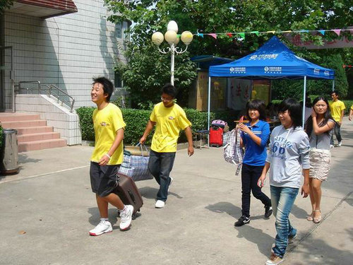 956日,是我校2009级新生报到入学日。原本安静的校园因为这股新鲜血液的注入而显得热闹了起来,整个校园沉浸在迎接新生的忙碌与喜悦中。我校的教职工和学生志愿者组成了迎新大军,在火车站、汽车站、校园各处都闪现着他们忙碌的身影,热情、周到的接待受到新生和家长的好评。校园里处处洋溢着热烈、喜庆的气氛。
