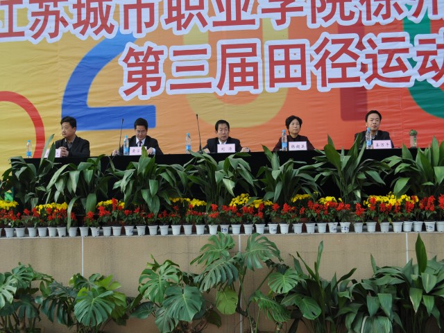 刘涛书记致开幕词。刘书记说,体育是国家教育方针的重要组成部分,是落实素质教育的具体行动,对于提高学生身体素质,充实课余生活,具有十分重要的意义。今天我校田径运动会的举办,为同学们的自我管理、自主发展、个性成长提供了一个展示的舞台,是对同学们心理素质、身体素质和体育运动水平的检验,更是对全校师生组织纪律性和精神风貌的大检阅。刘书记要求全体运动员以高昂的斗志和顽强拼搏的精神,积极参赛,赛出风格、赛出成绩,赛出道德风尚,赛出团结友谊;要求全体裁判员、工作人员忠于职守,树立安全第一、严守规则的意识,做到公平裁判、服务热情,为各项比赛营造良好的竞技氛围,保证竞赛的顺利进行;要求没有比赛项目的同学,服从大会管理,遵守大会纪律,文明观赛、主动服务,为运动员摇旗呐喊、加油助威,为争创精神文明代表队做出应有的贡献。