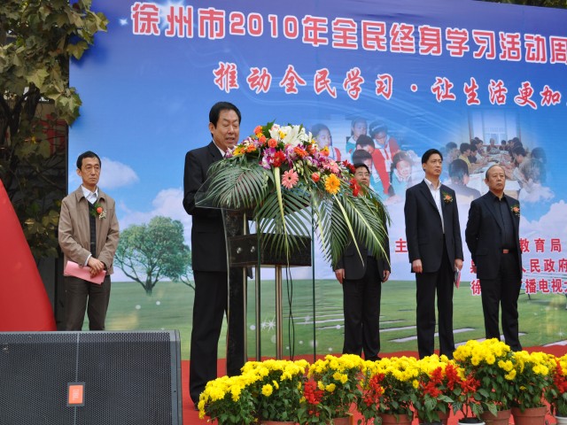 10月31日,“徐州市2010年全民终身学习活动周启动仪式”在我校隆重举行。市教育局局长强国、我校党委书记刘涛、泉山区副区长毛军等领导出席启动仪式。启动仪式由市教育局副调研员张建勋主持。