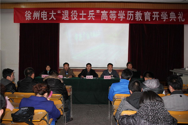 3月12日下午,2011年春徐州市退役士兵高等学历教育开学典礼在北校东五楼会议室举行,副校长黄学勇出席开学典礼并讲话,开学典礼由开放教育学院党支部书记王思亮主持。开放教育学院院长陈杰、副院长李晓荣、继续教育学院院长胡钊涵等有关同志以及2011年春徐州市退役士兵高等学历教育219名学员参加了开学典礼。