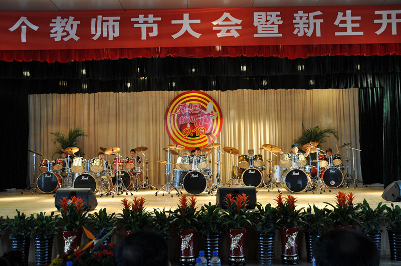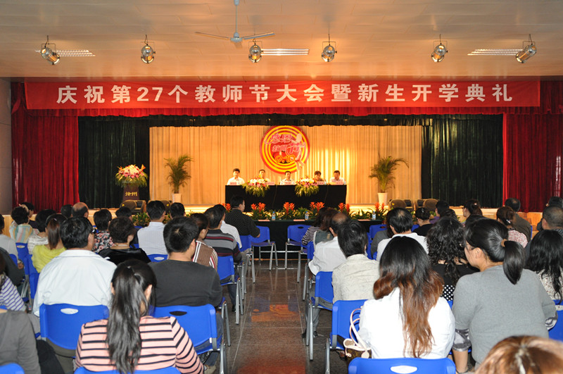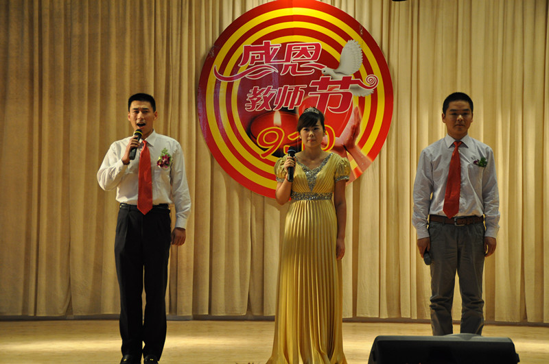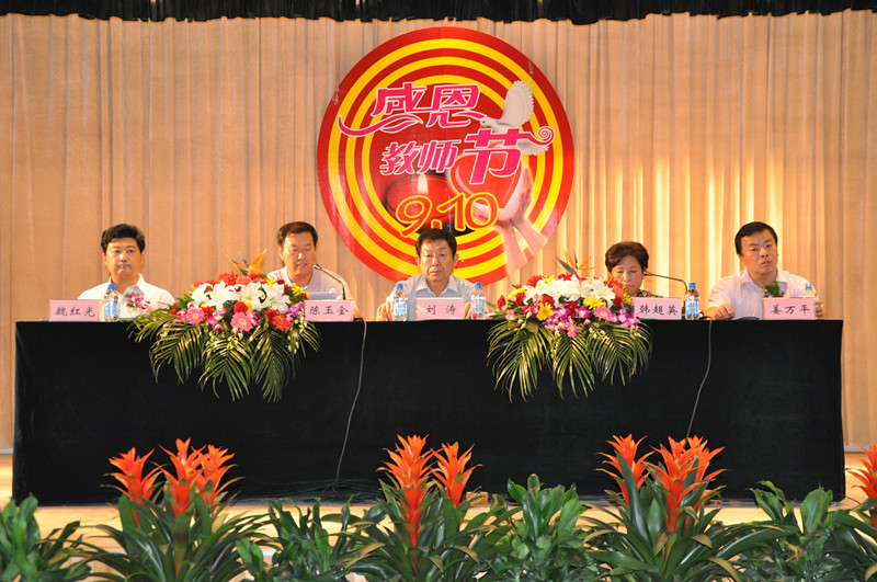 会议在雄壮的国歌声中拉开序幕。团委副书记孔扬宣读了校党委、行政致全体老师的一封信;2011级新生代表向全体老师献花;新生代表吕素琴、教师代表王美丽先后发言;副校长陈玉金宣读了教师节表彰决定,校领导为获得表彰的先进个人颁发了证书。