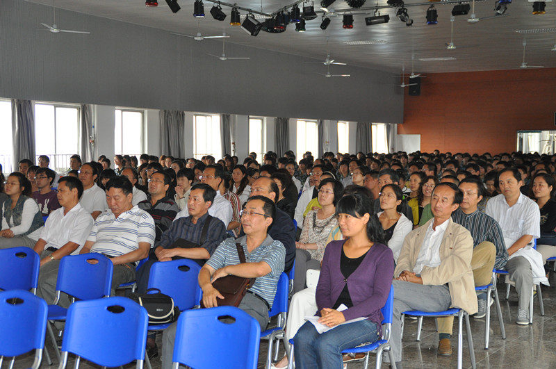 党委书记刘涛在会上讲话。刘书记首先向全校教职工致以节日的问候,向受到表彰的同志表示祝贺,向2011级新同学表示热烈的欢迎!