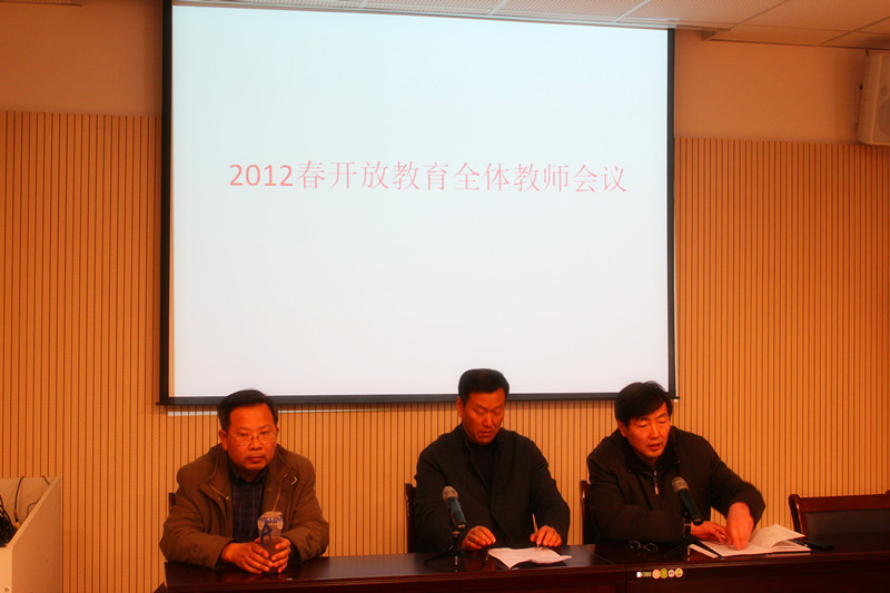 3月10日下午,我校在北校视频会议室召开2012春学期教学工作会议。开放学院全体教职工及开放教育任课教师参加了会议,副校长陈玉金到会并讲话。