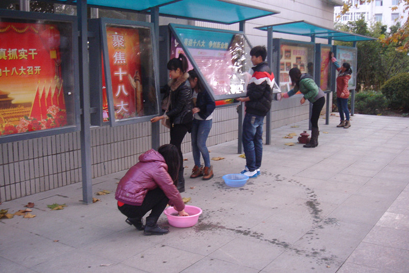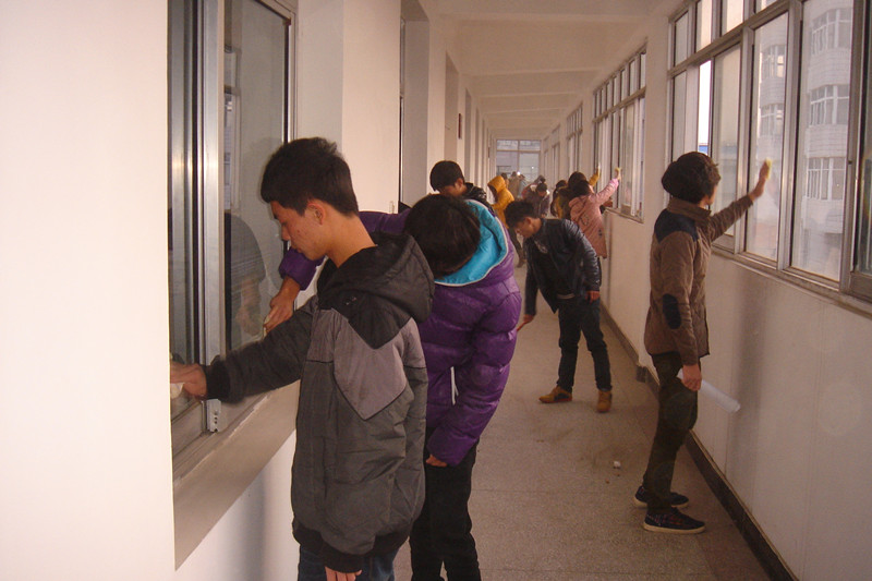 11月27日下午,我校第二十一期入党积极分子培训班全体学员开展了一次美化校园义务劳动。重点对南校区教学楼、多媒体大楼、宣传栏、实验楼的玻璃、地面、窗台、楼梯扶手等进行擦拭、清扫。在劳动中,学员分工明确,相互合作,积极主动,不怕脏不怕累,呈现出一派热火朝天的气象。经过一个小时的辛勤劳动,校园面貌焕然一新。