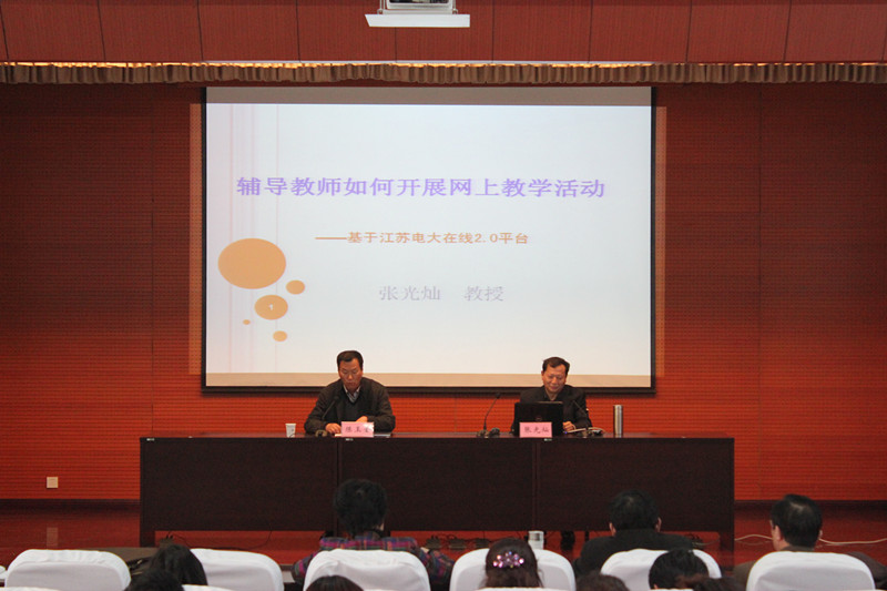 张教授从江苏电大网上教学活动开展情况概述、课程辅导教师如何开展网上教学活动以及江苏电大2.0教学平台、QQ群等软件使用技巧等三个方面,全面展示了江苏电大系统开放教育网上教学活动的整体情况,深入浅出地讲解了作为一个课程辅导教师应该如何设计网上教学活动以及他个人在网上教学中采取的一些方法、技巧。此次讲座内容丰富,理念新颖,取得了良好的效果。