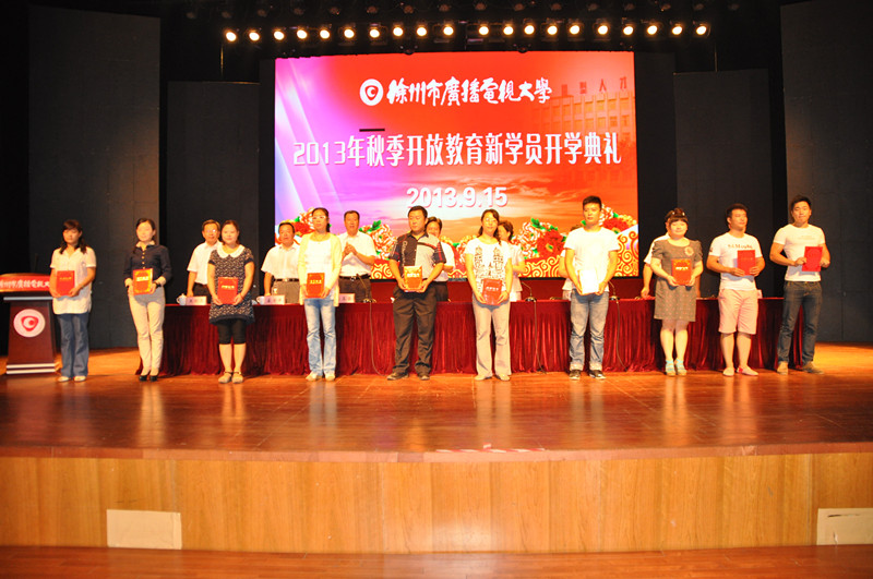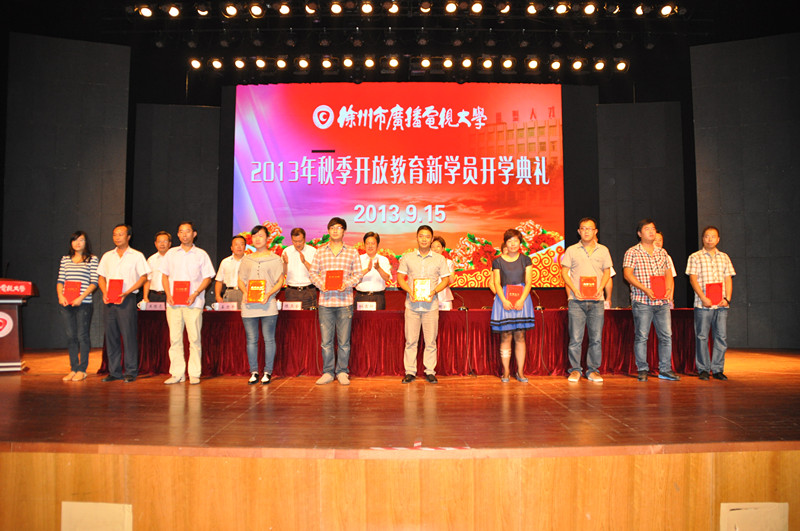 9月15日上午,我校在徐州音乐厅举行了2013年秋季开放教育新学员开学典礼。校党委书记杜吉林,校长韩超英,副校长陈玉金、袁惠,校长助理姜万平、魏红光等出席会议,2013年秋季开放教育新学员和被评为开放教育优秀学员、优秀毕业生的老学员参加会议。会议由副校长陈玉金主持。