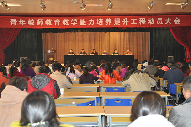 11月20日下午,我校在南校区六楼大学生活动中心召开青年教师教育教学能力培养提升工程动员大会。校党委书记杜吉林,校长韩超英,副校长陈玉金、袁惠,校长助理姜万平、魏红光出席会议。培养提升工程领导小组成员、导师团队成员、40岁以下青年教师、全体中层干部及各教研究室主任参加会议。会议由韩超英校长主持。