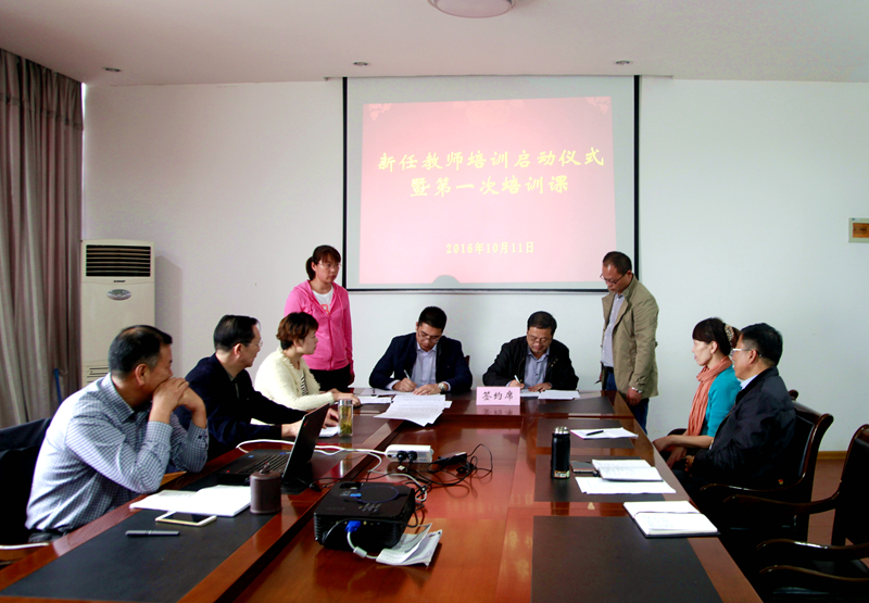 会上,教务处邱息良处长介绍了2016年新任教师岗前培训实施方案。全体新任教师进行了庄严的入职宣誓;韩素华同志代表新任教师作了表态性发言;九对指导老师和新任教师现场签订了师徒结对协议。