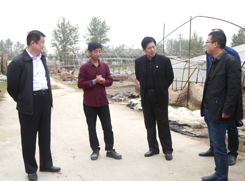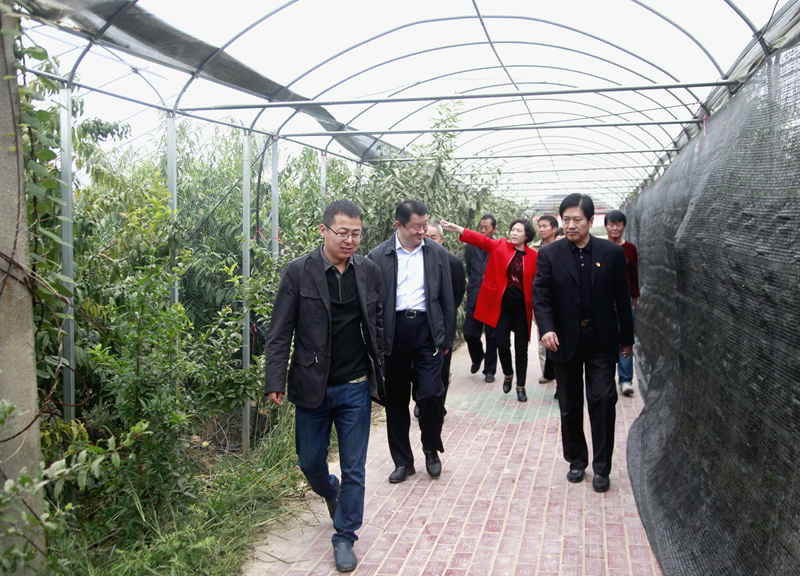 在沛县县领导及鹿楼镇党委领导等陪同下,杜吉林一行首先来到魏花园村进行调研,随后走访了该村食用菌种植基地、绿色果品种植基地。