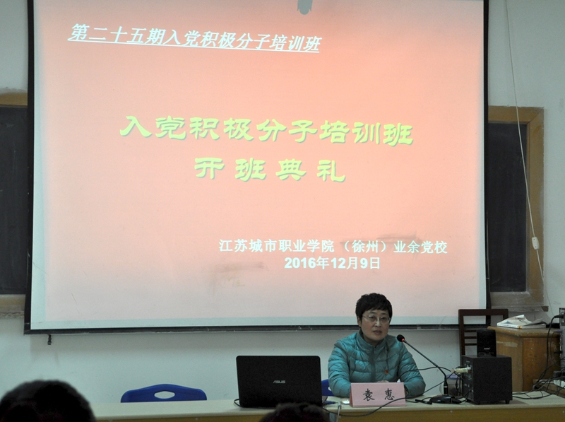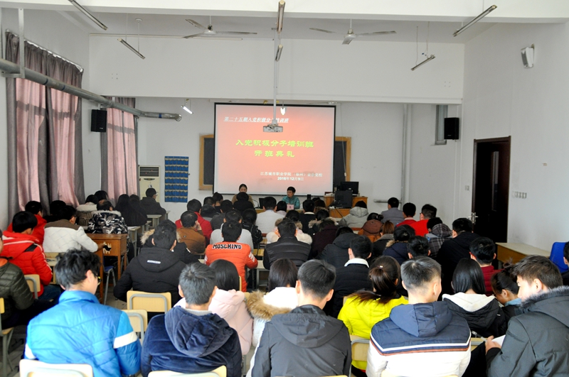 12月9下午我校二十期入党积极分子培训班开班典礼在高职校区六楼多媒体教室举行。副校长袁惠同志出席开班典礼。全校117名递交入党申请书的学生和2名教职工学员参加了开班典礼。开班典礼由党委办公室组织科科长郭静同志主持。